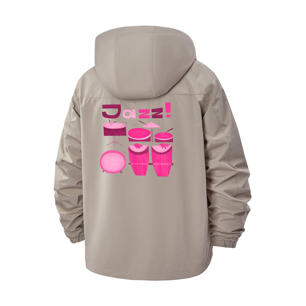 Jazz Drum Set Unisex Full-Zip Printed Waterproof Hooded Windbreaker