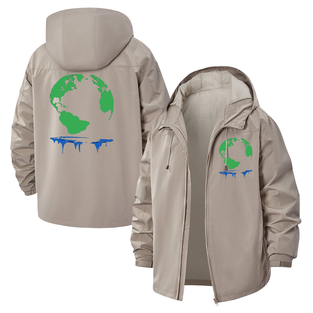Melting Earth Unisex Full-Zip Printed Waterproof Hooded Windbreaker