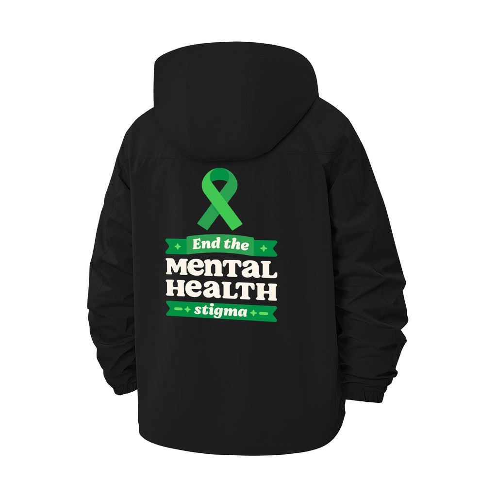 Mental Health Awareness Unisex Full-Zip Printed Waterproof Hooded Windbreaker