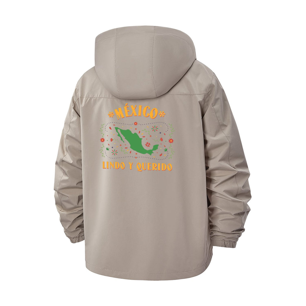 Mexico Map and Floral Unisex Full-Zip Printed Waterproof Hooded Windbreaker