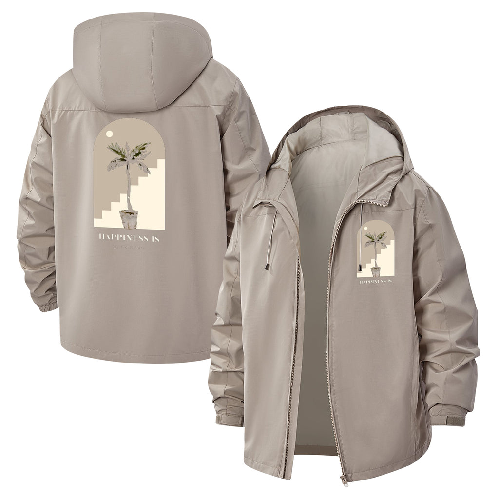 Minimal Palm Archway Unisex Full-Zip Printed Waterproof Hooded Windbreaker