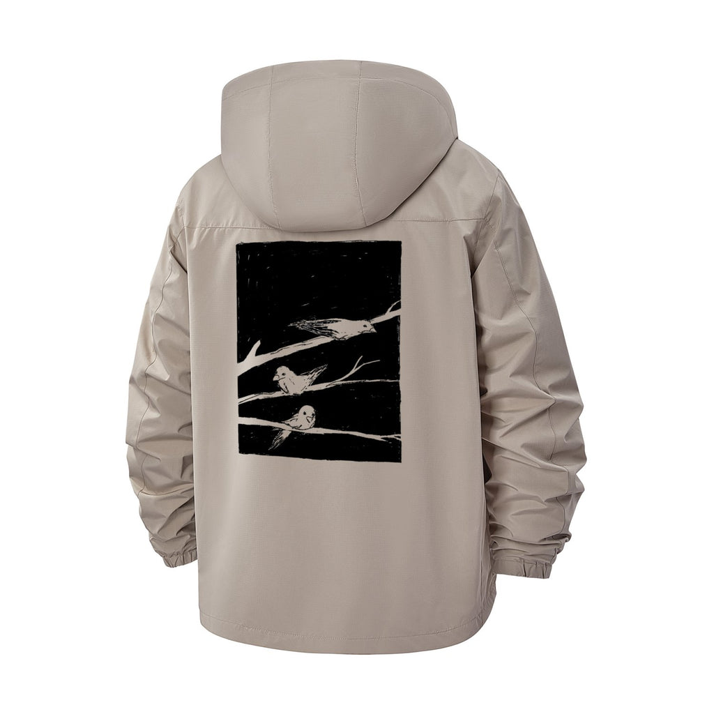 Minimalist Birds on Branches Unisex Full-Zip Printed Waterproof Hooded Windbreaker