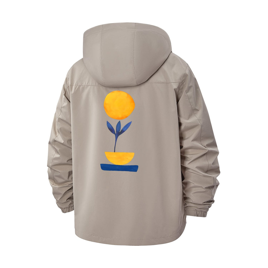Modern Abstract Botanical Unisex Full-Zip Printed Waterproof Hooded Windbreaker