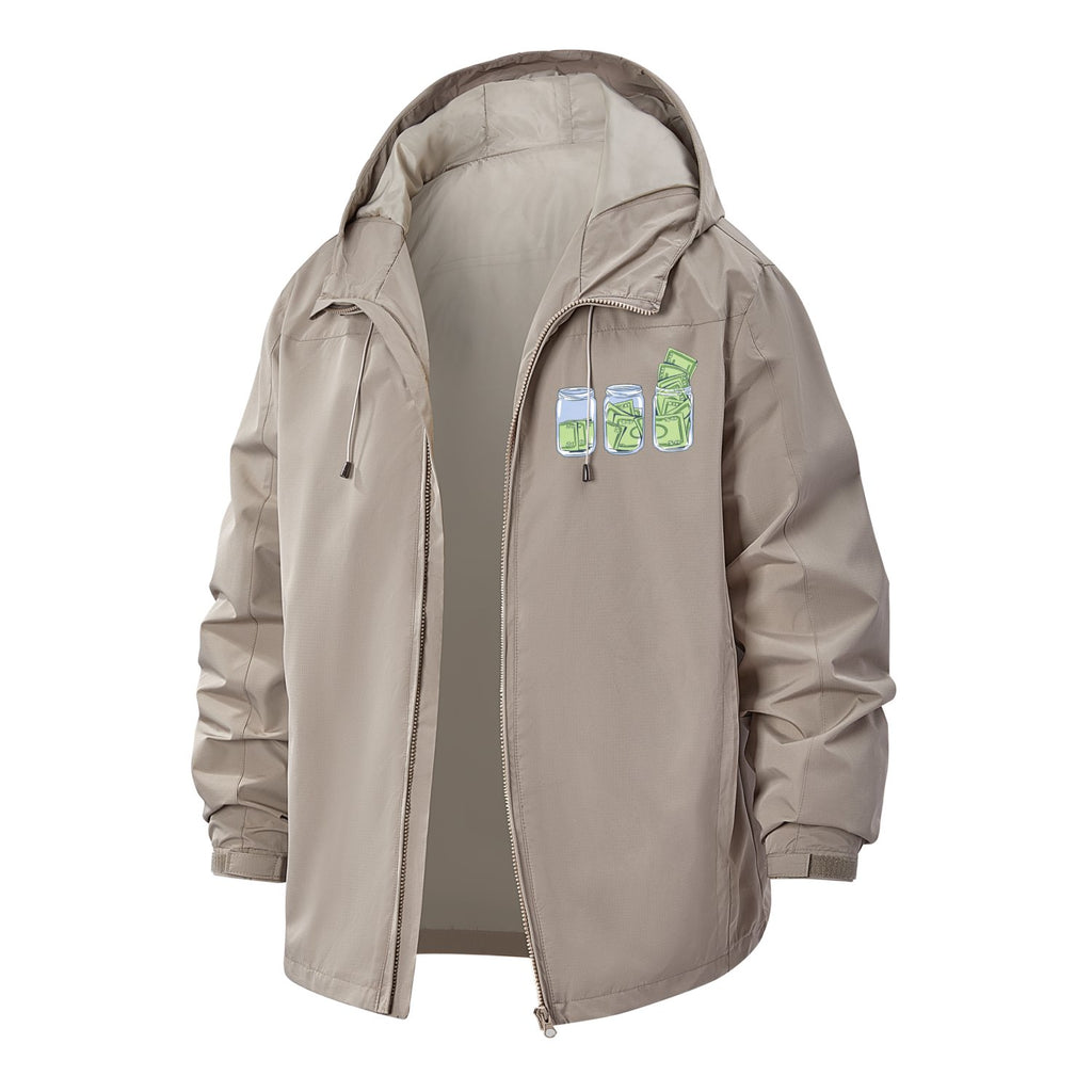 Money Jar Motif Unisex Full-Zip Printed Waterproof Hooded Windbreaker