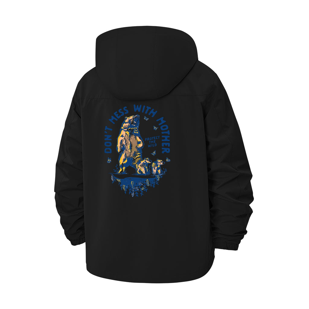 Mother Bear Wilderness Unisex Full-Zip Printed Waterproof Hooded Windbreaker