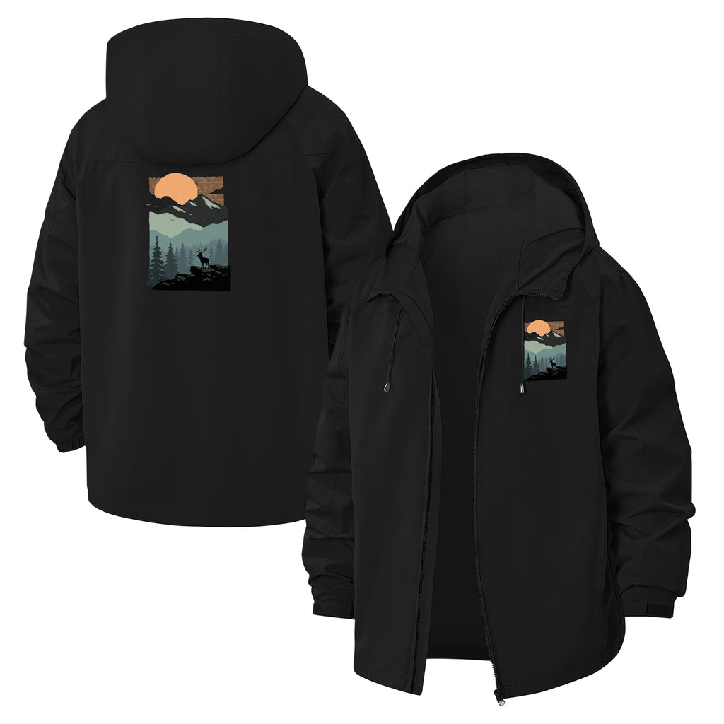 Mountain Sunset Unisex Full-Zip Printed Waterproof Hooded Windbreaker