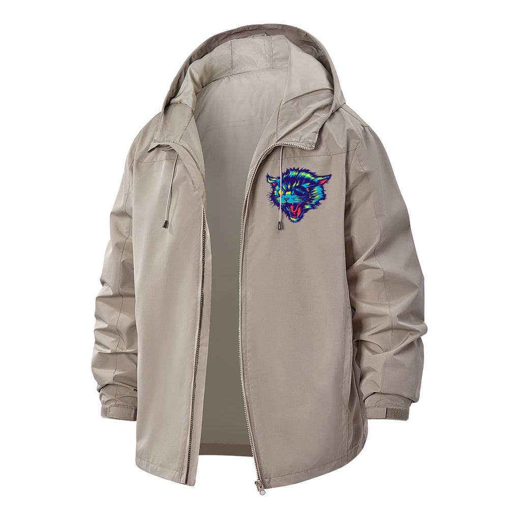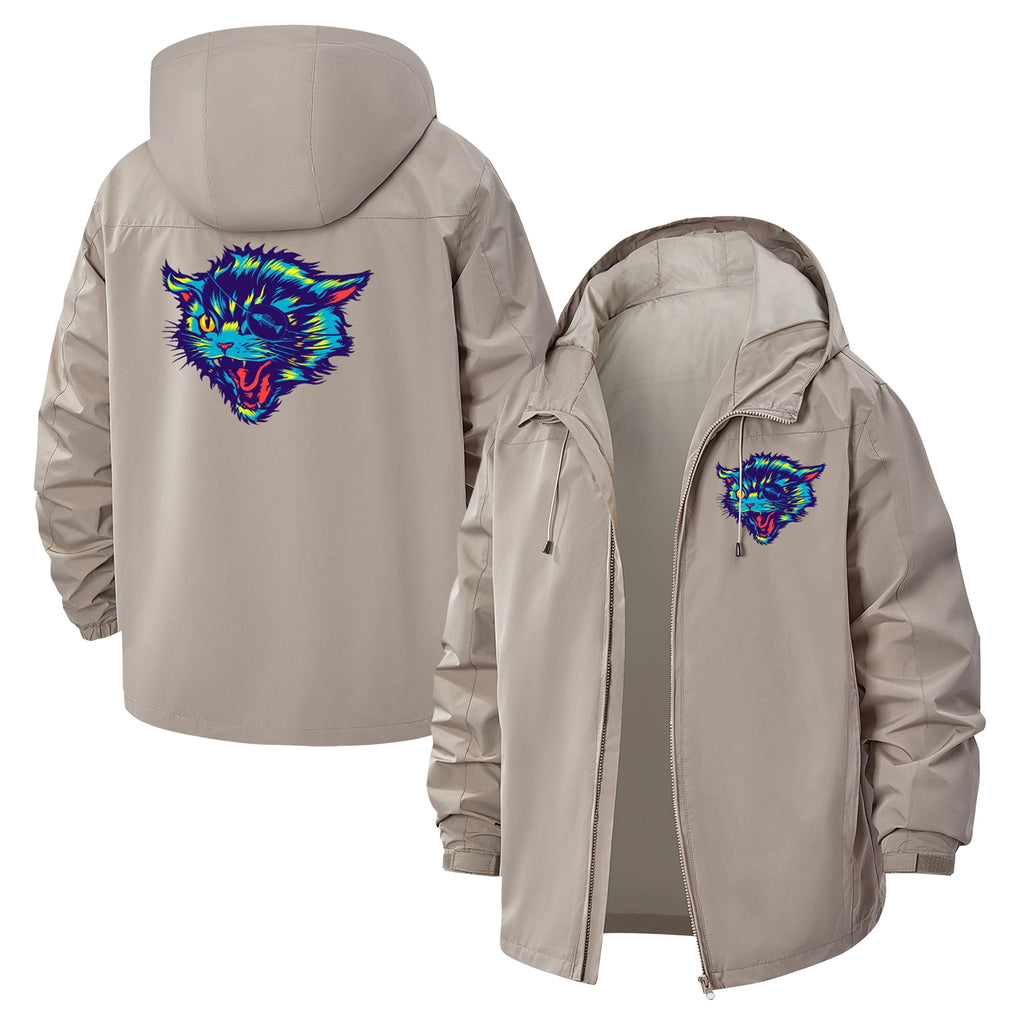 Neon Wildcat Unisex Full-Zip Printed Waterproof Hooded Windbreaker