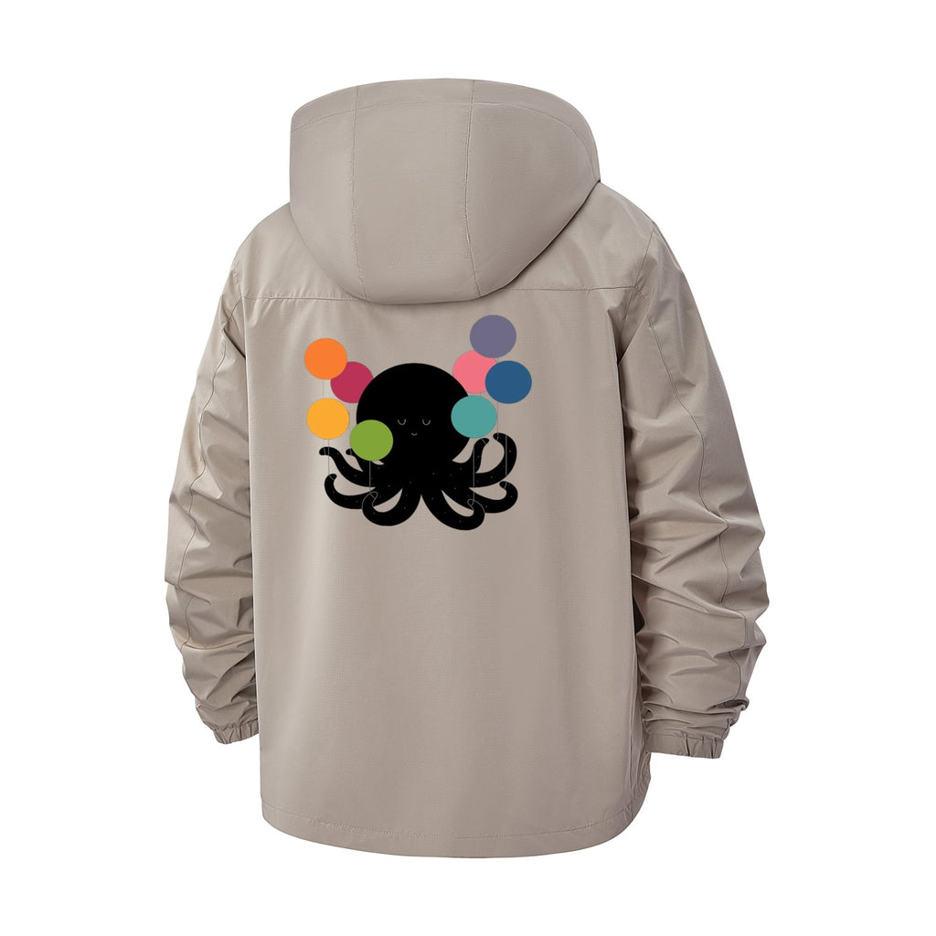 Octopus Bubbles Unisex Full-Zip Printed Waterproof Hooded Windbreaker
