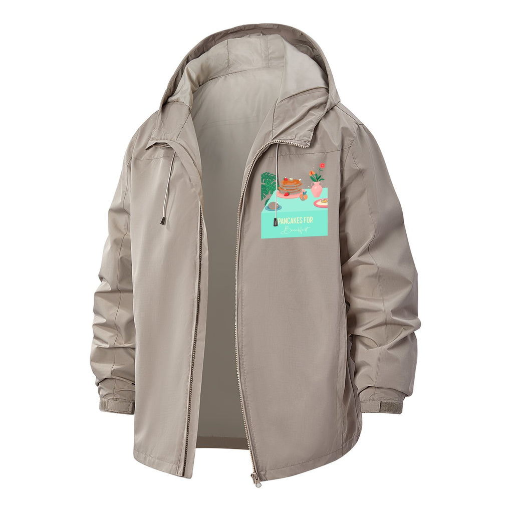 Pancake Breakfast Unisex Full-Zip Printed Waterproof Hooded Windbreaker