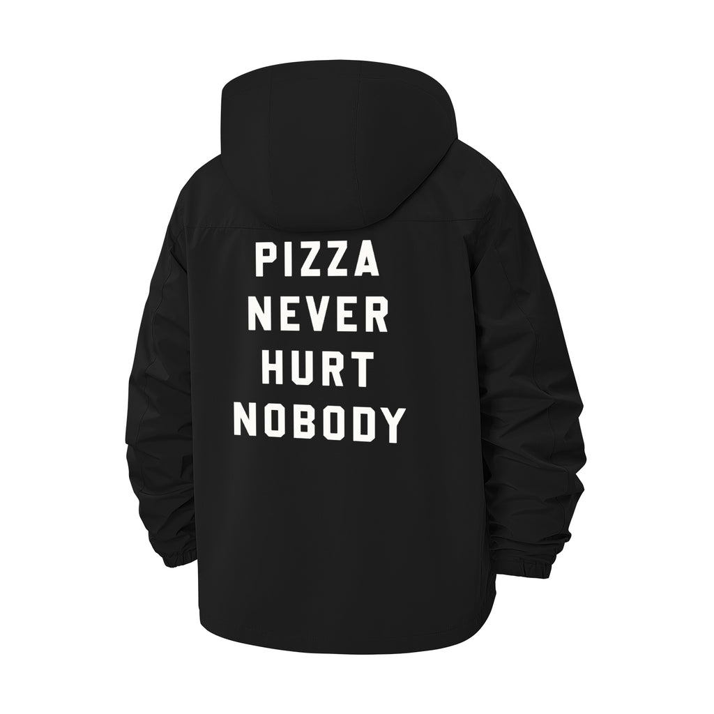 Pizza Slogan Unisex Full-Zip Printed Waterproof Hooded Windbreaker