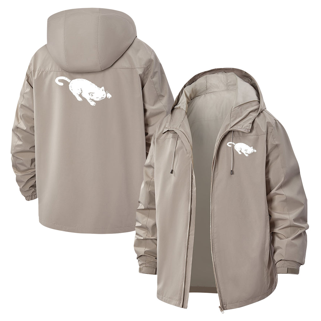 Playful Cat Unisex Full-Zip Printed Waterproof Hooded Windbreaker