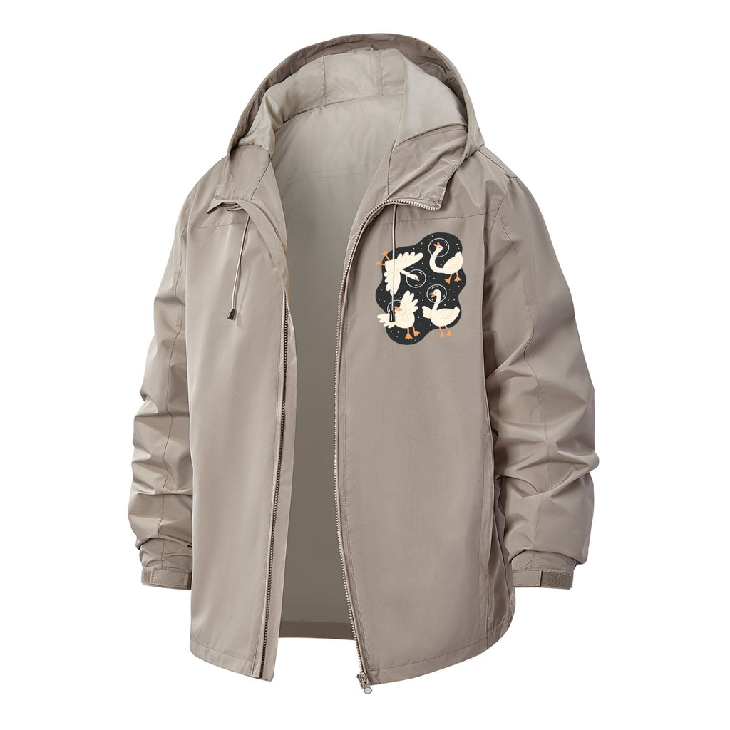 Playful Swan Unisex Full-Zip Printed Waterproof Hooded Windbreaker