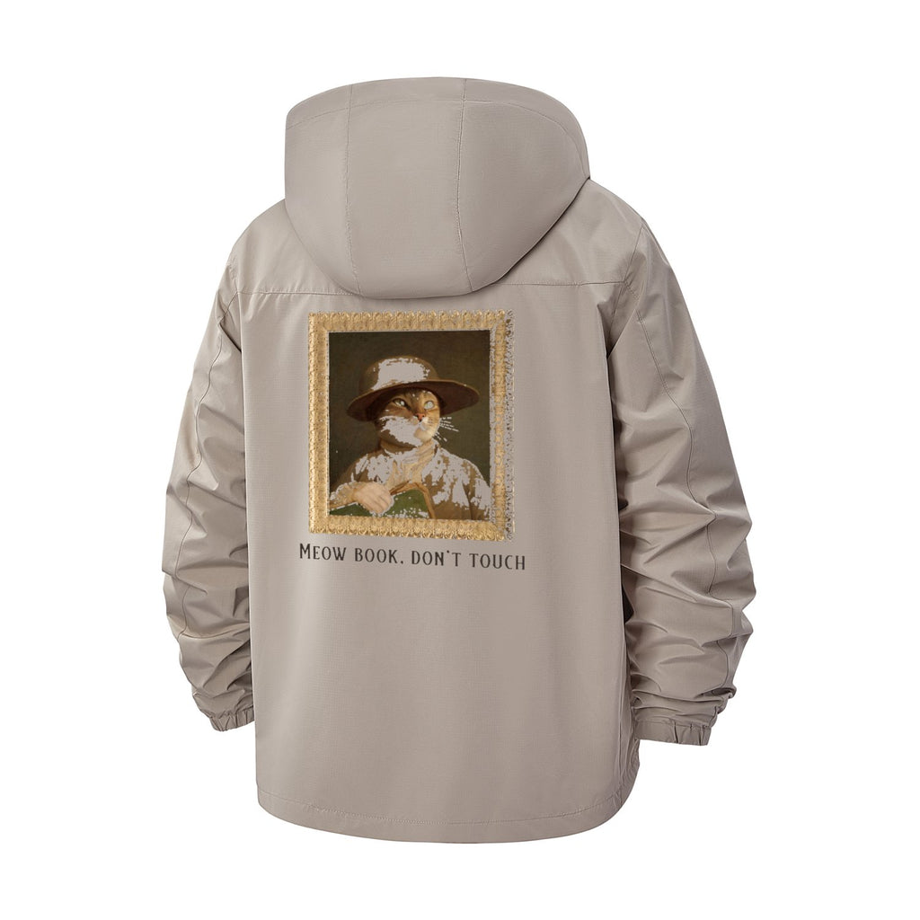 Renaissance Cat Portrait Unisex Full-Zip Printed Waterproof Hooded Windbreaker