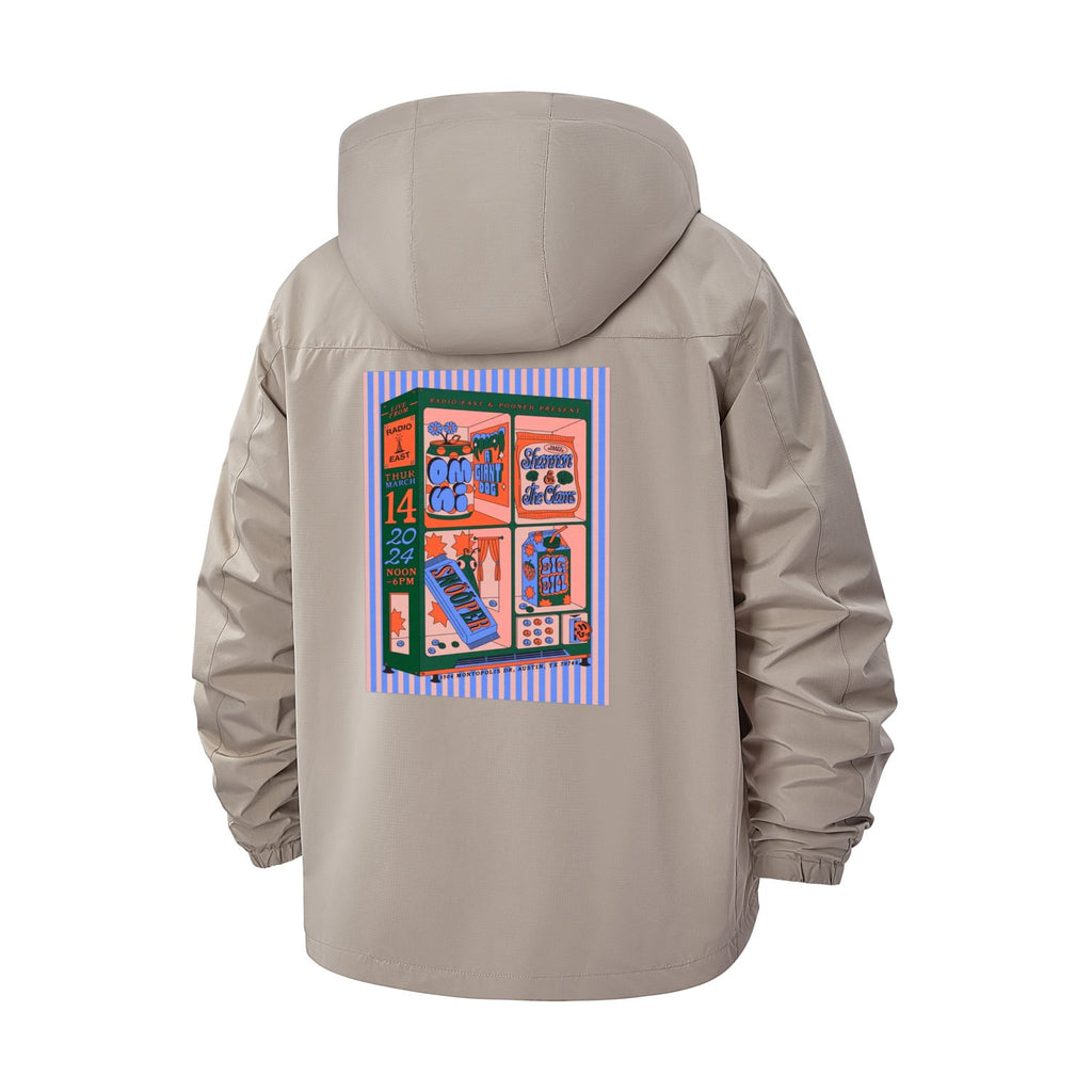 Retro Calendar and Objects Unisex Full-Zip Printed Waterproof Hooded Windbreaker