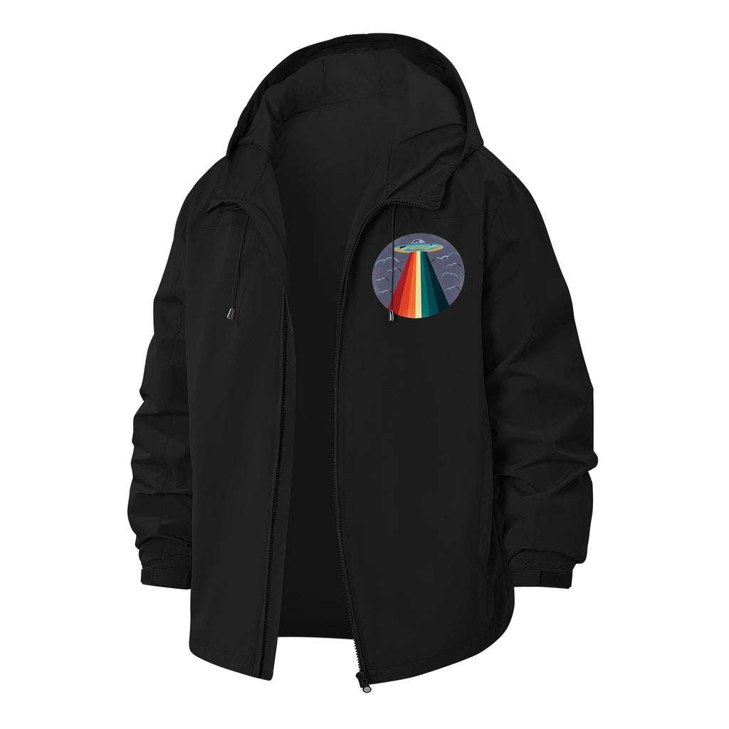 Retro UFO Beam Unisex Full-Zip Printed Waterproof Hooded Windbreaker