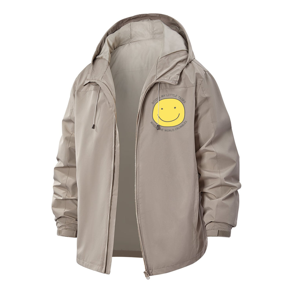 Smiley Face Motivation Unisex Full-Zip Printed Waterproof Hooded Windbreaker