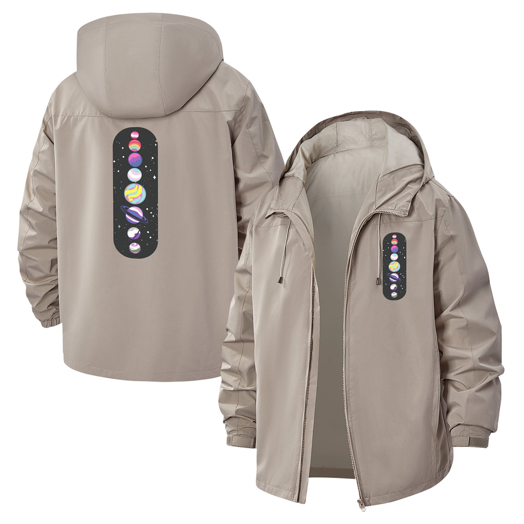 Solar System Graphic Unisex Full-Zip Printed Waterproof Hooded Windbreaker