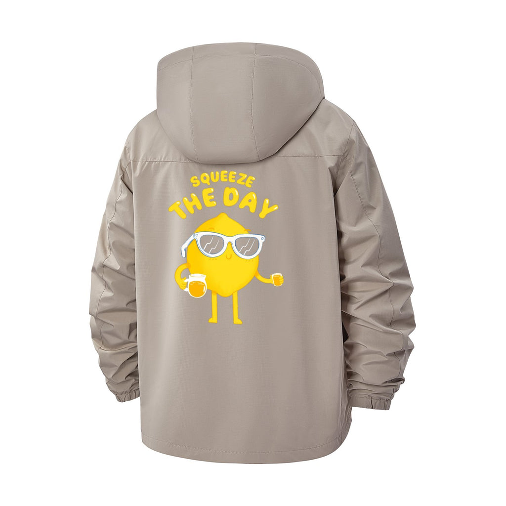 Squeeze the Day Retro Smiley Unisex Full-Zip Printed Waterproof Hooded Windbreaker
