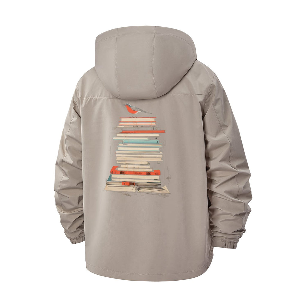 Stacked Books Unisex Full-Zip Printed Waterproof Hooded Windbreaker