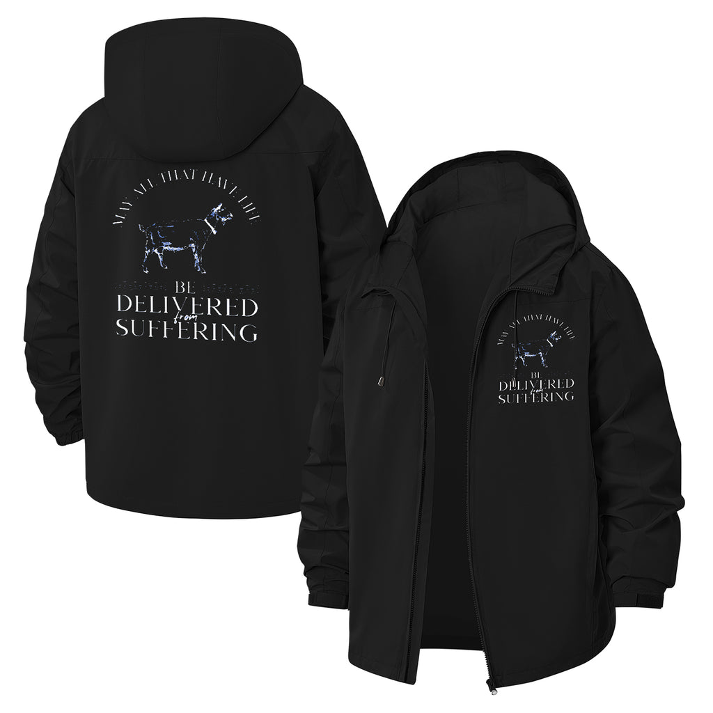 Suffering Typographic Unisex Full-Zip Printed Waterproof Hooded Windbreaker