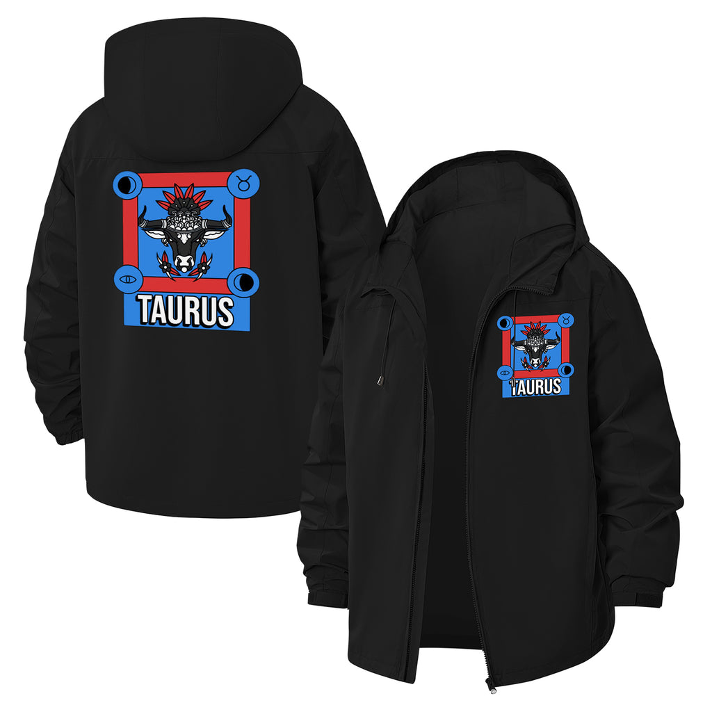 Taurus Zodiac Unisex Full-Zip Printed Waterproof Hooded Windbreaker