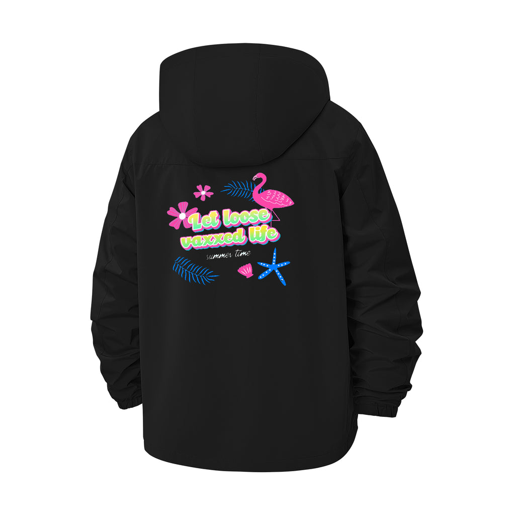 Tropical Flamingo Vacation Unisex Full-Zip Printed Waterproof Hooded Windbreaker
