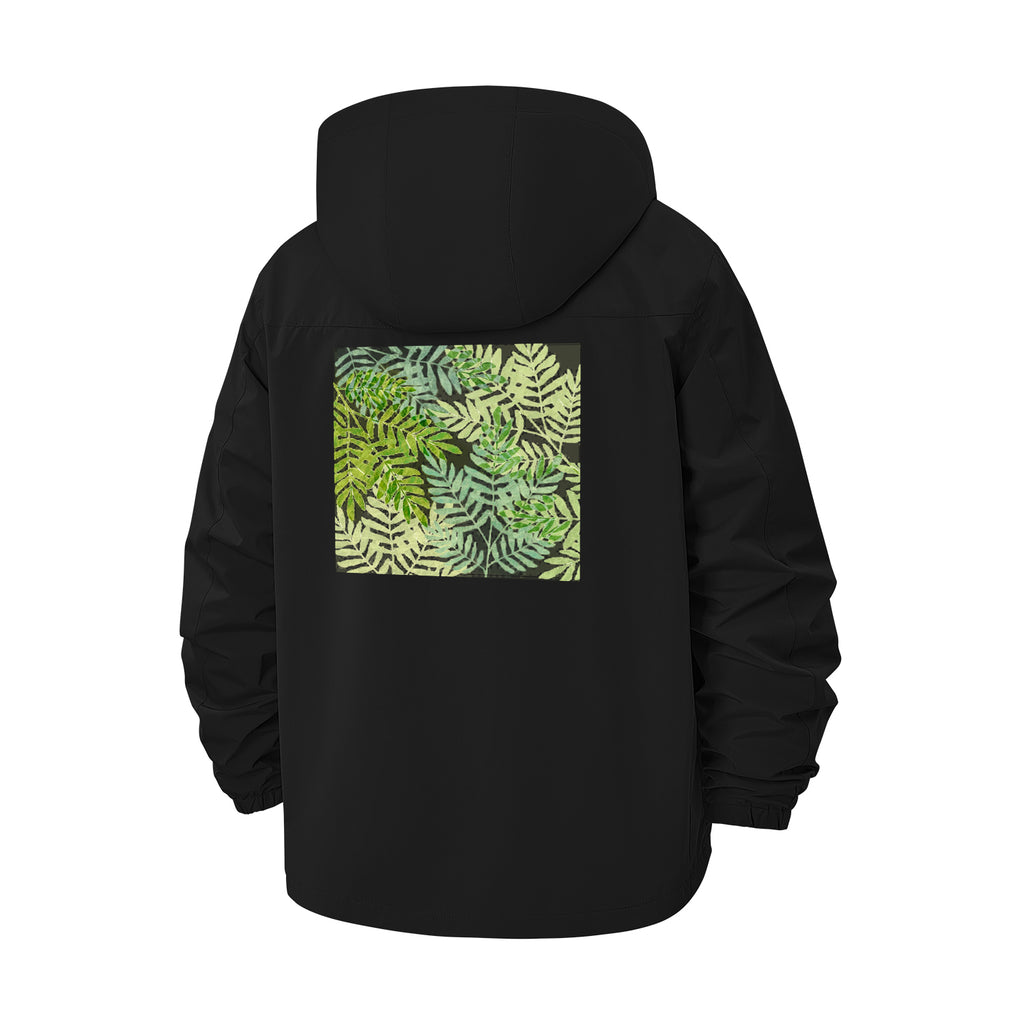Tropical Leaf Pattern Unisex Full-Zip Printed Waterproof Hooded Windbreaker