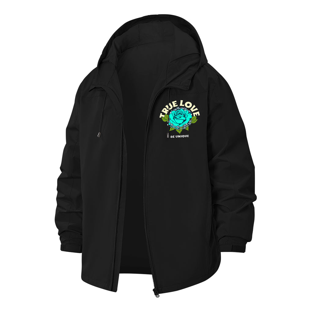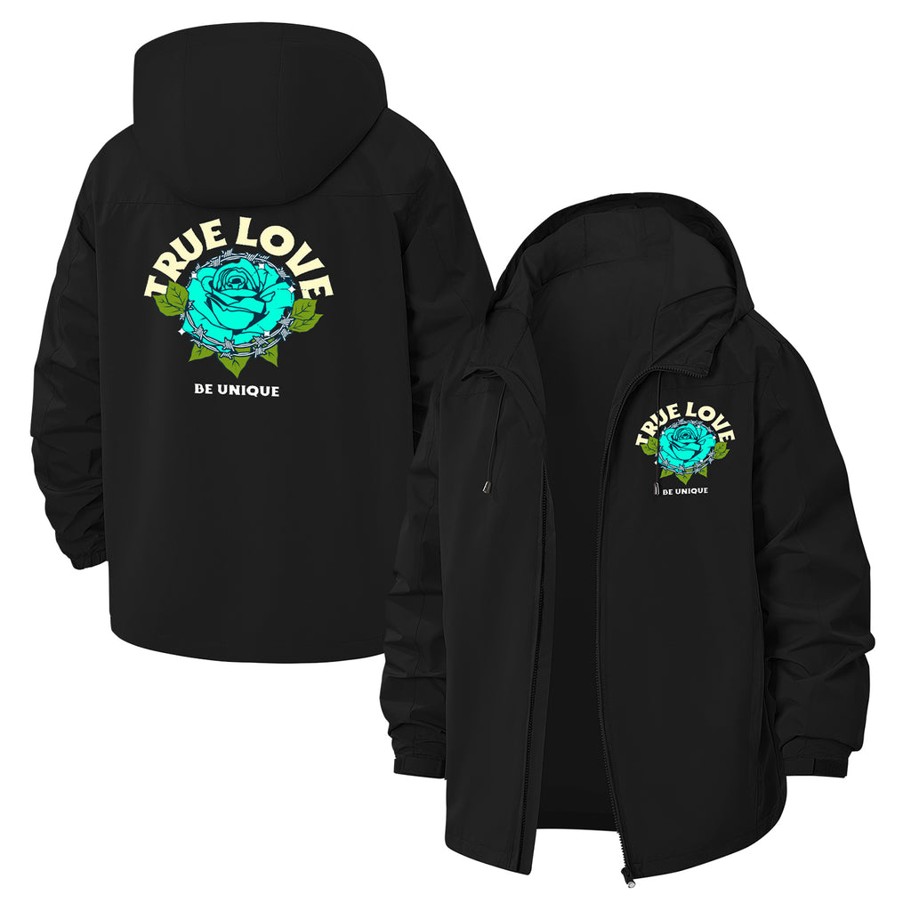 True Love Rose Unisex Full-Zip Printed Waterproof Hooded Windbreaker