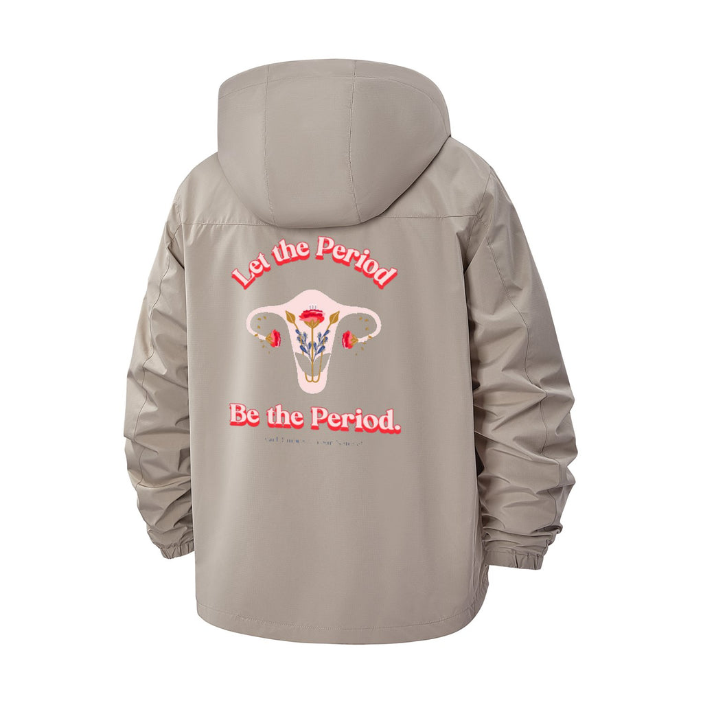 Uterus Motif Unisex Full-Zip Printed Waterproof Hooded Windbreaker