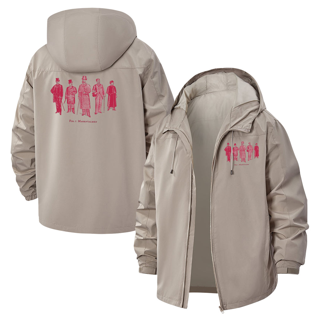 Vintage Gentlemen Illustration Unisex Full-Zip Printed Waterproof Hooded Windbreaker