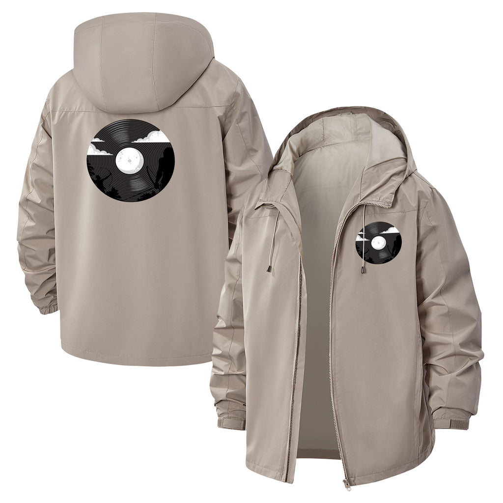 Vinyl Record Landscape Unisex Full-Zip Printed Waterproof Hooded Windbreaker