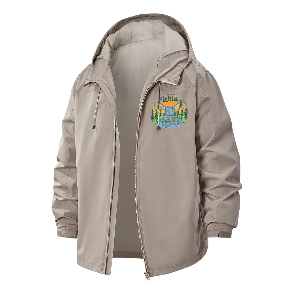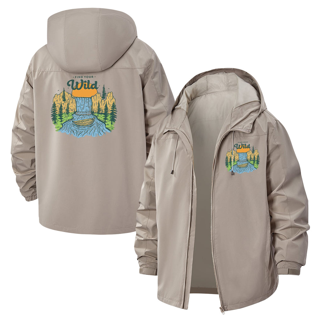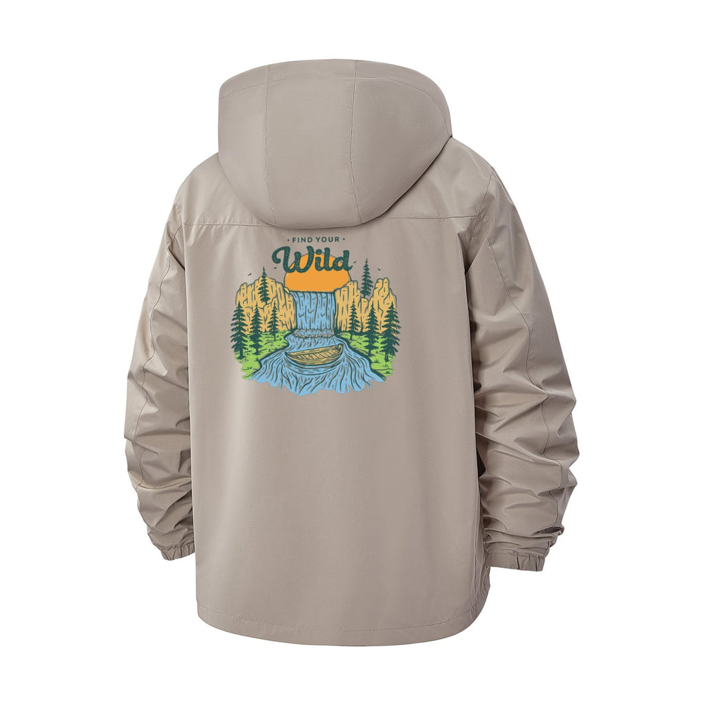 Waterfall Wilderness Unisex Full-Zip Printed Waterproof Hooded Windbreaker