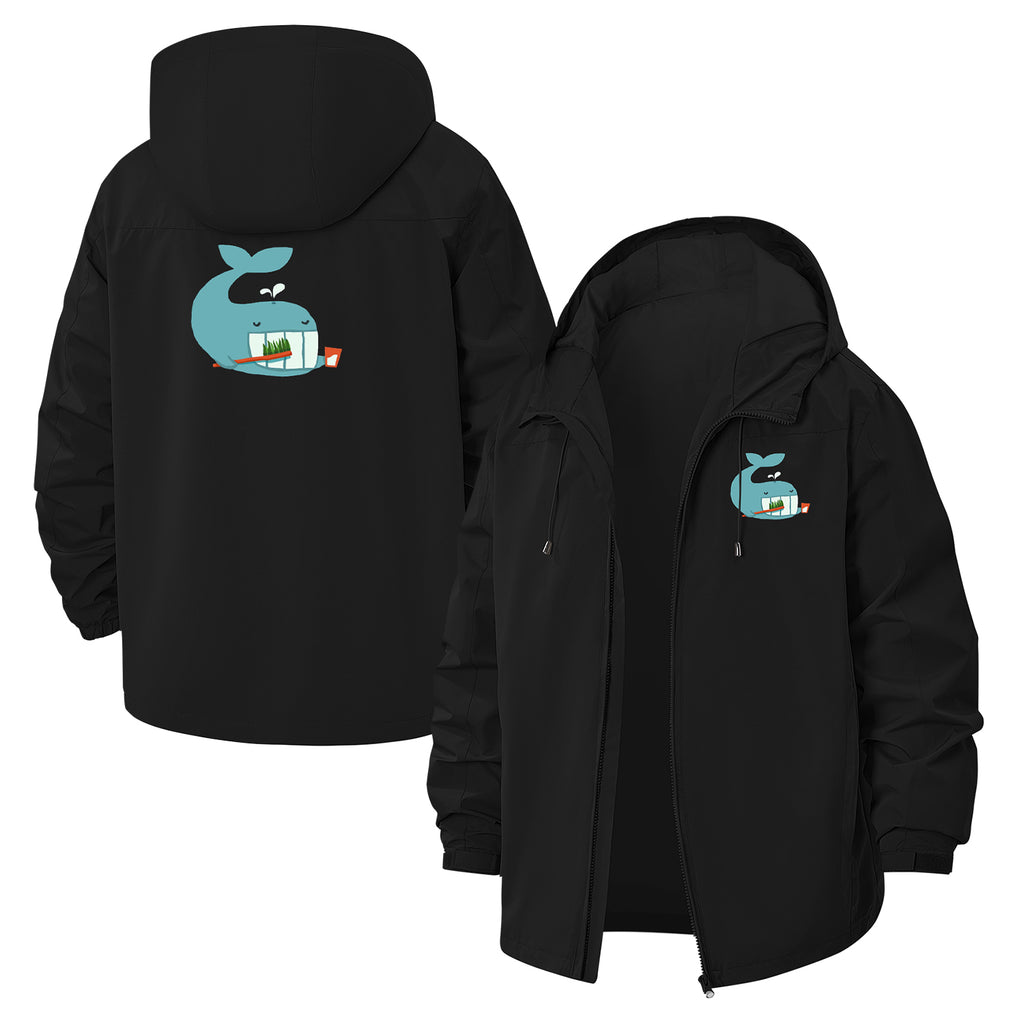 Whale With Drink Unisex Full-Zip Printed Waterproof Hooded Windbreaker