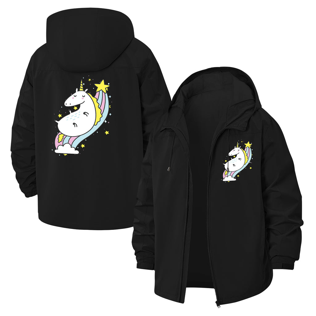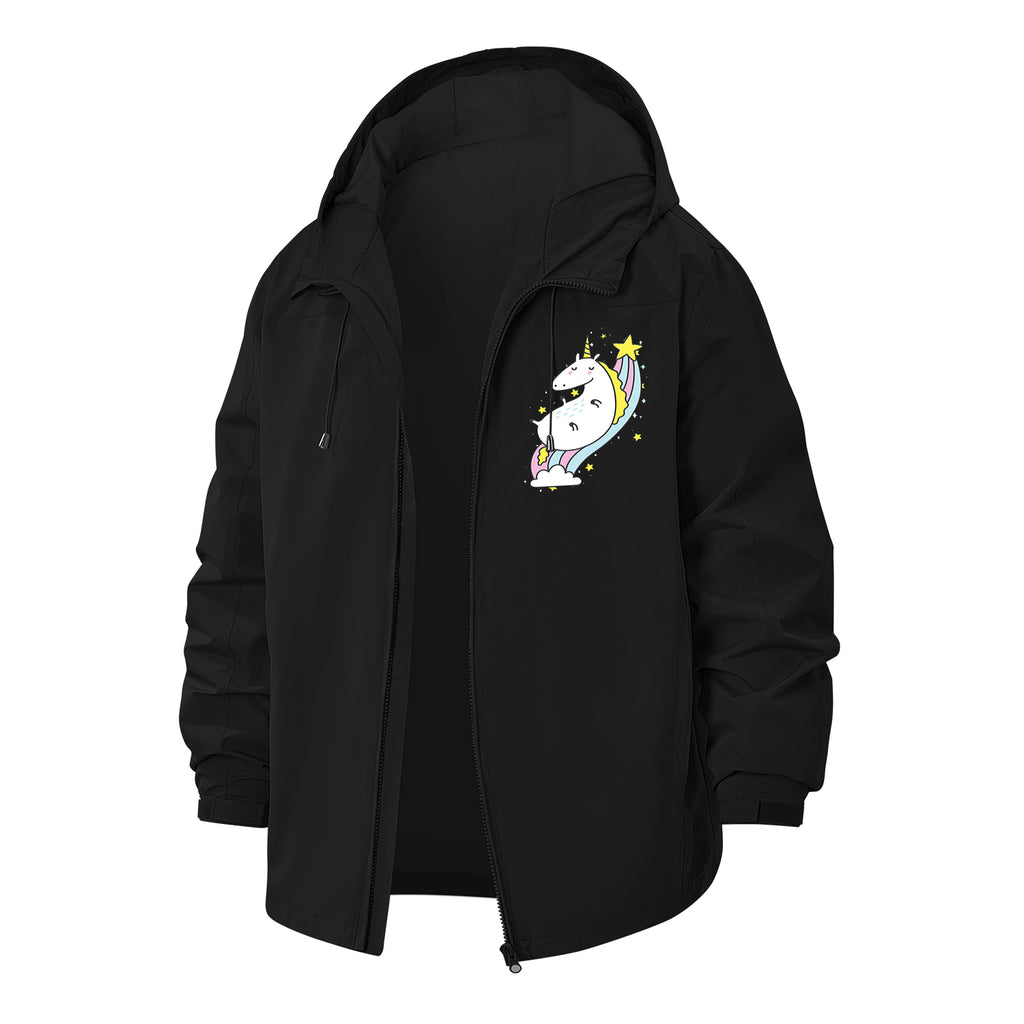 Whimsical Unicorn Unisex Full-Zip Printed Waterproof Hooded Windbreaker