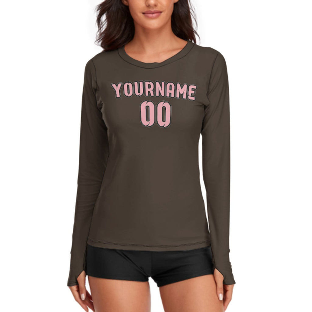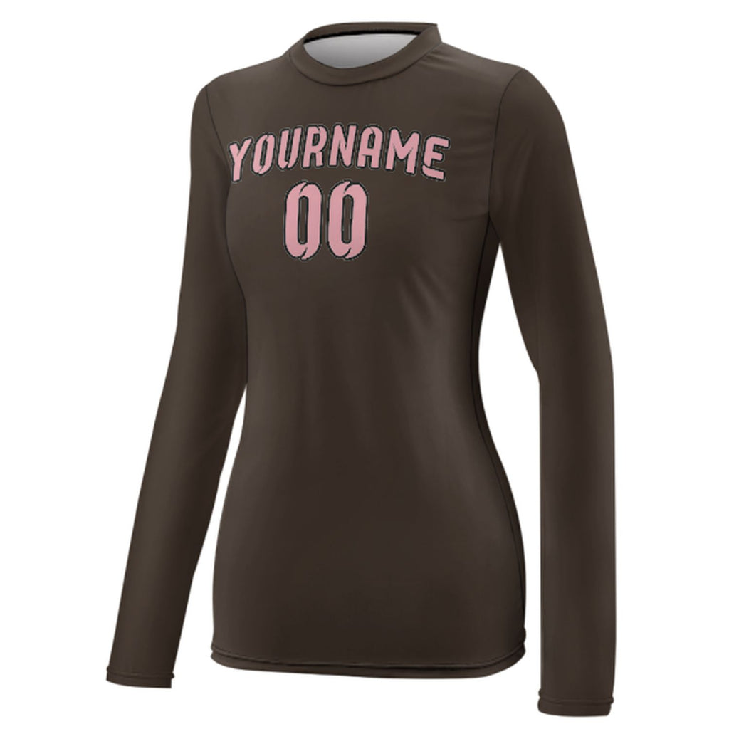 Custom Brown Light Pink Women's Long-Sleeve Shirt