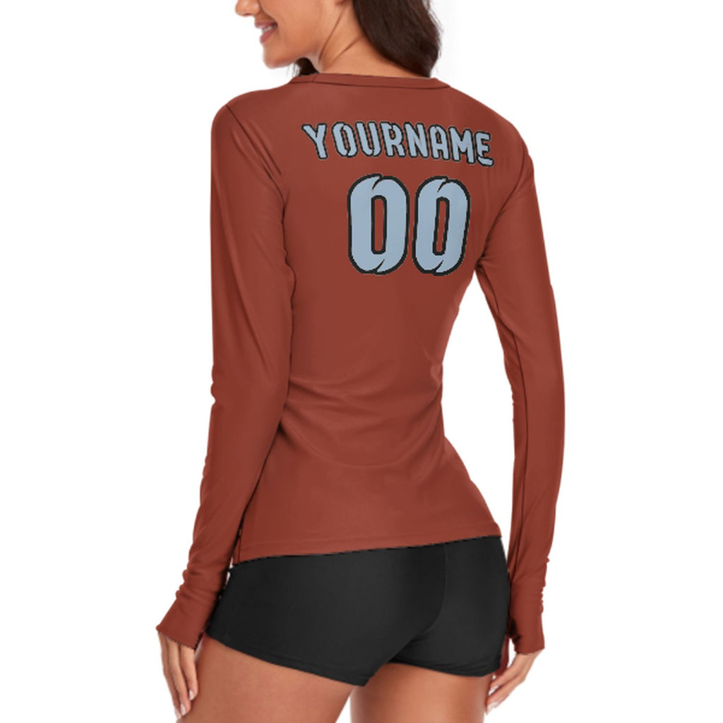 Custom Coral Red Light Blue Women's Long-Sleeve Shirt