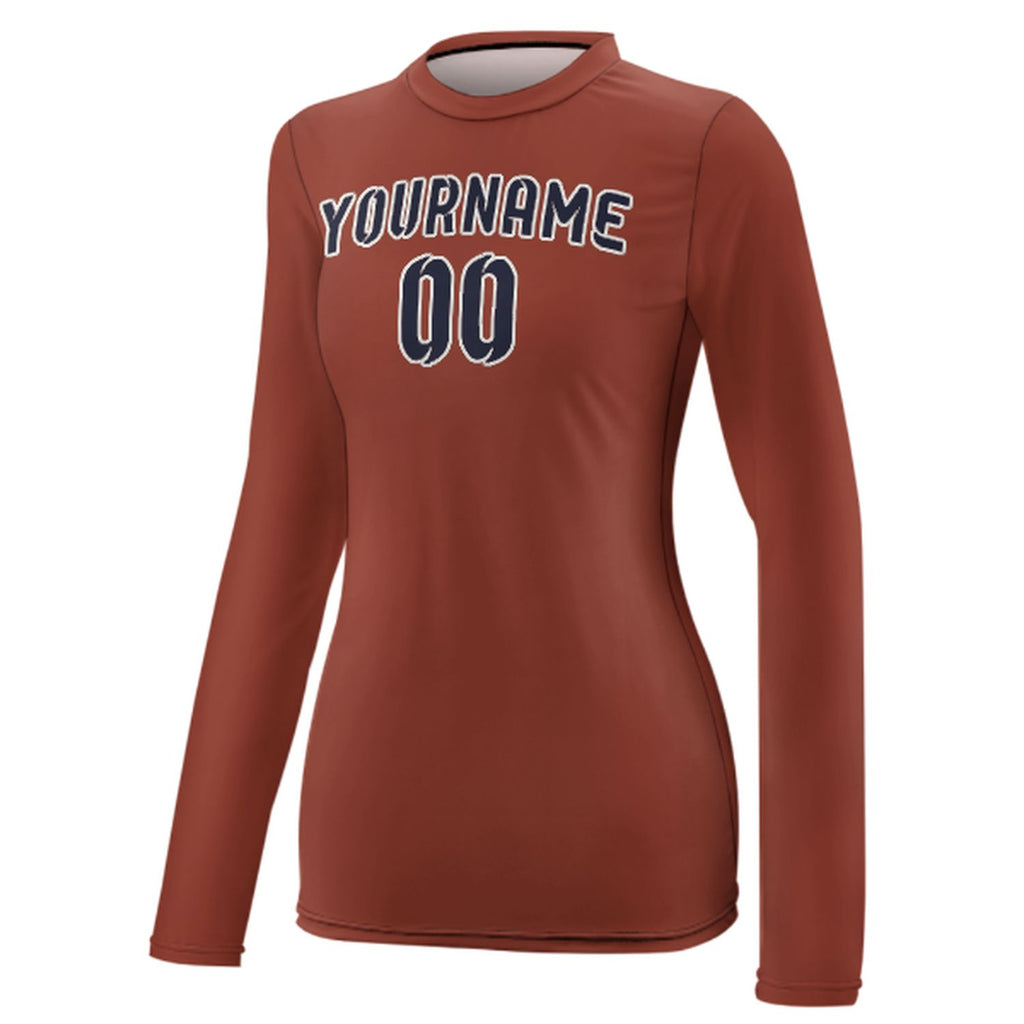 Custom Coral Red Navy Women's Long-Sleeve Shirt