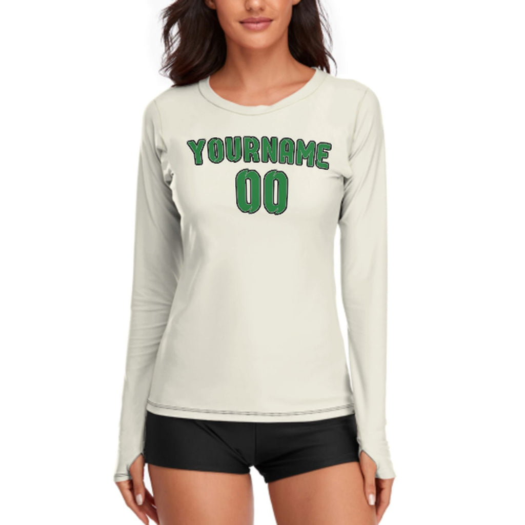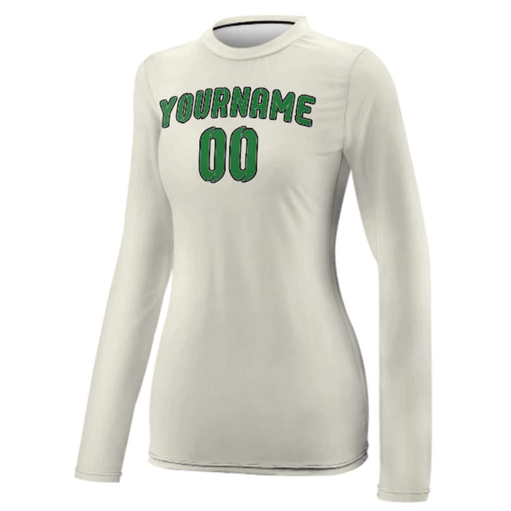 Custom Cream Emerald Green Women's Long-Sleeve Shirt