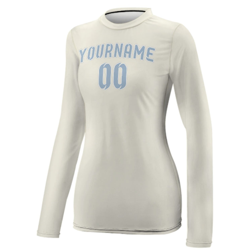 Custom Cream Light Blue Women's Long-Sleeve Shirt