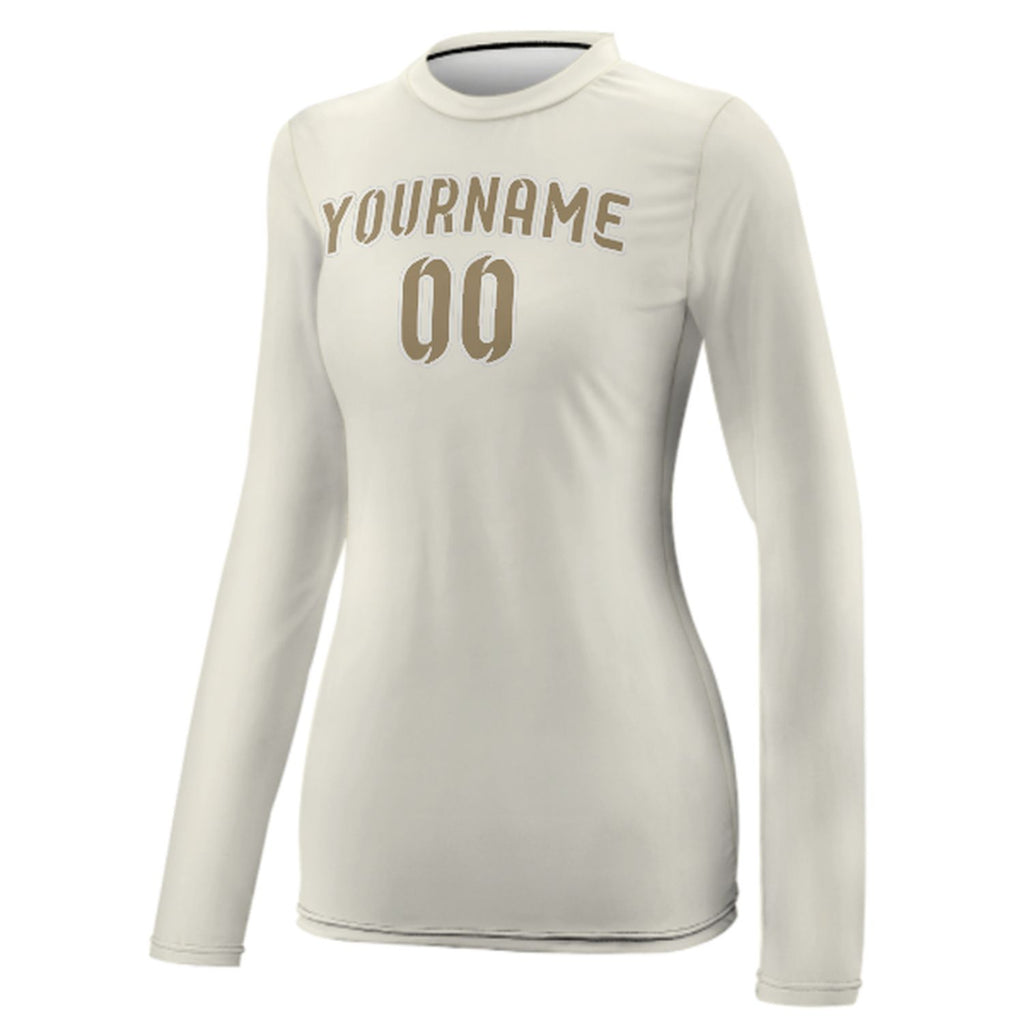 Custom Cream Light Khaki Women's Long-Sleeve Shirt