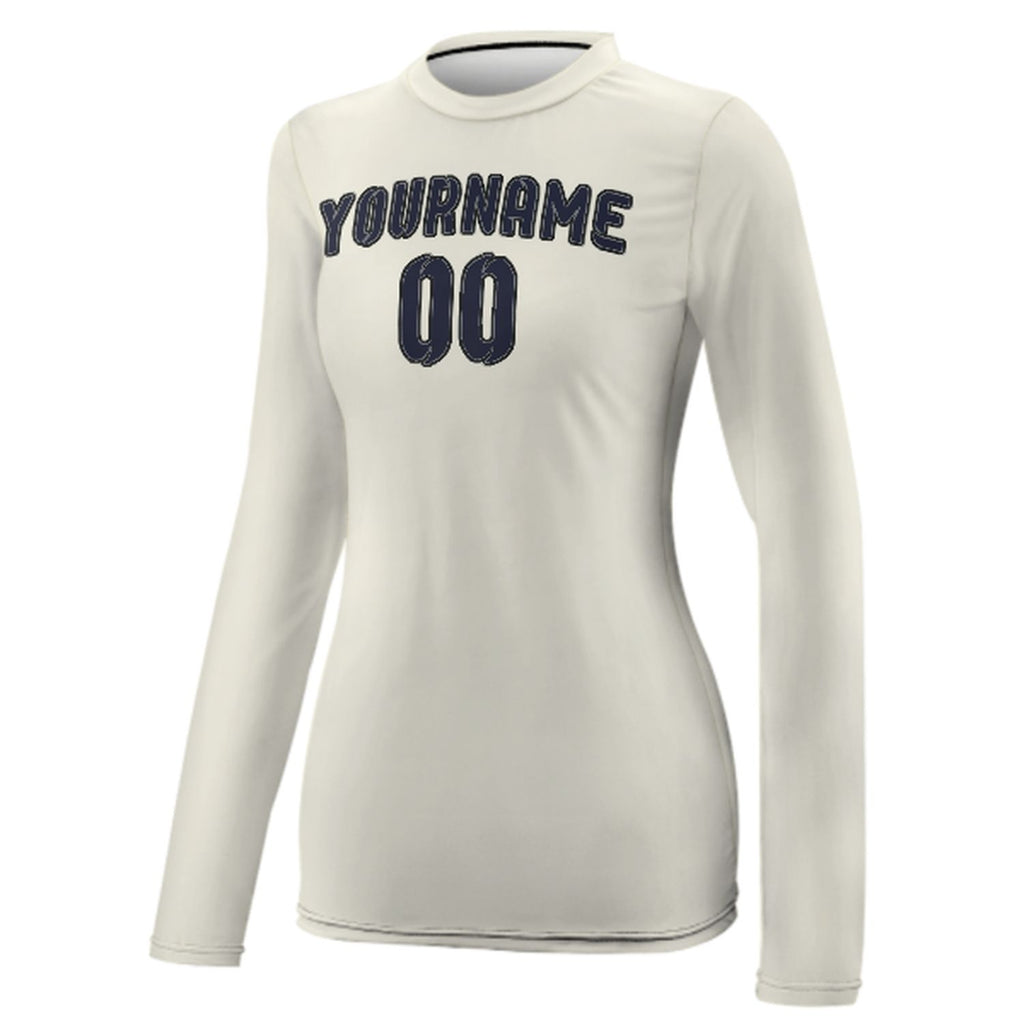 Custom Cream Navy Women's Long-Sleeve Shirt