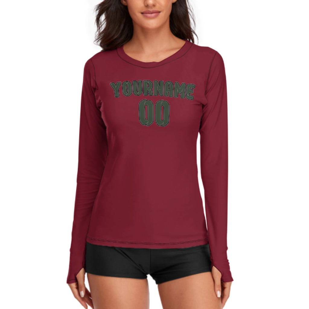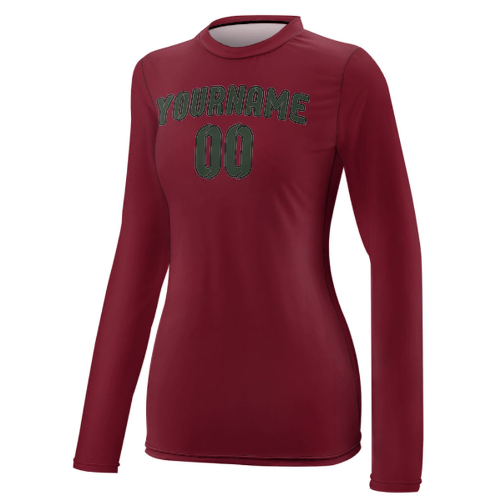 Custom Crimson Red Dark Green Women's Long-Sleeve Shirt