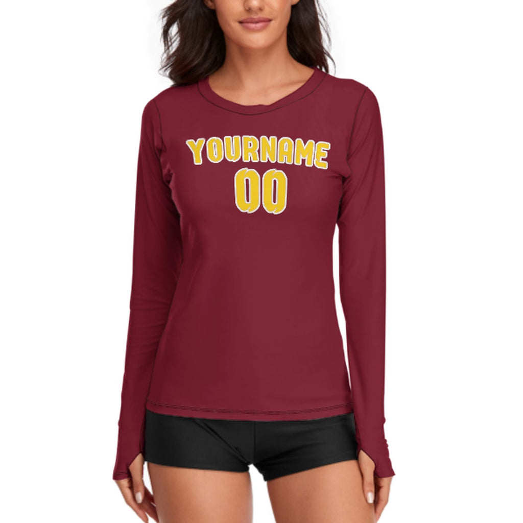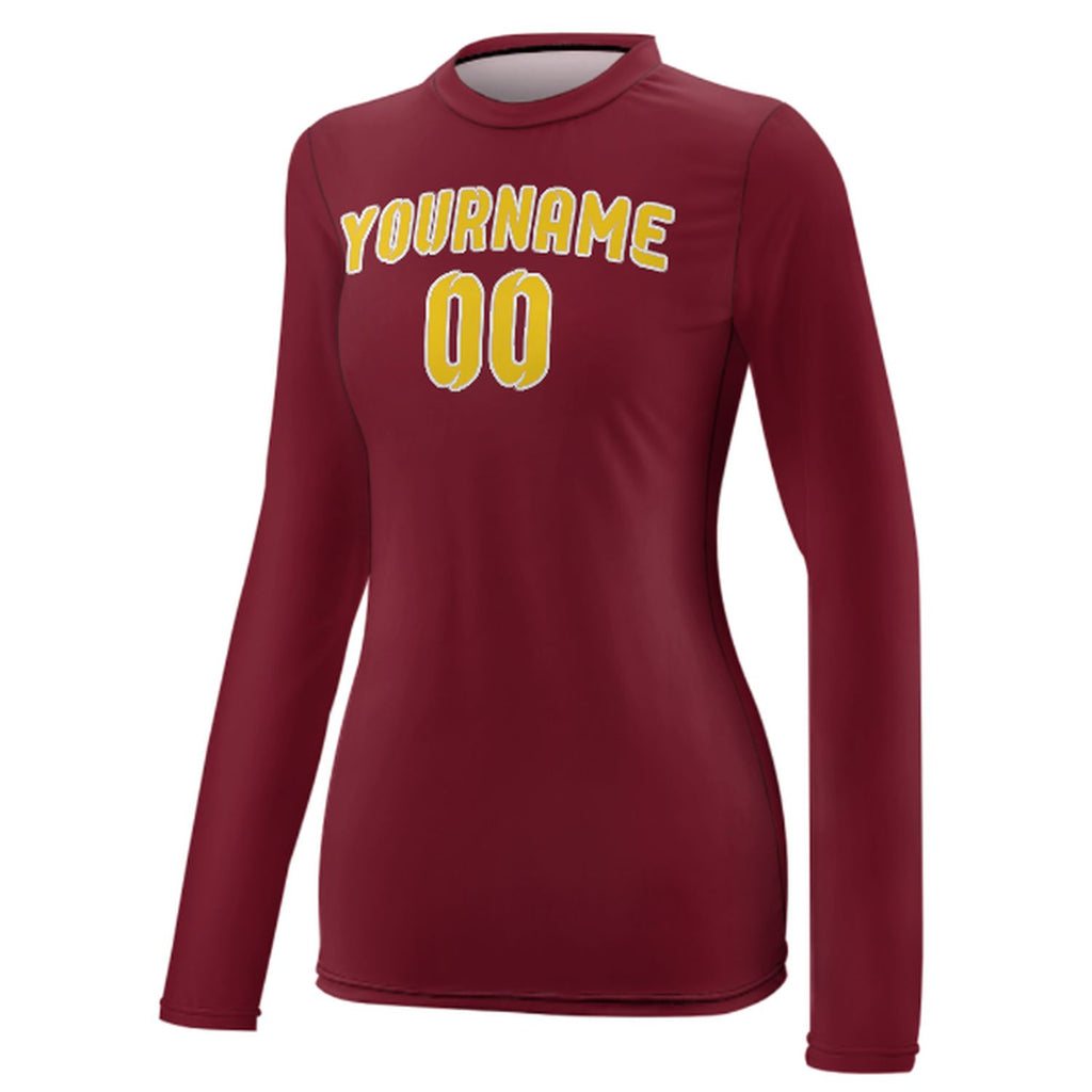 Custom Crimson Red Gold Women's Long-Sleeve Shirt