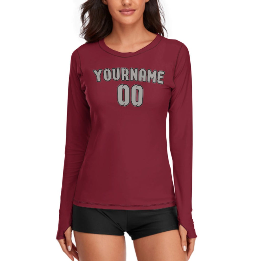 Custom Crimson Red Gray Women's Long-Sleeve Shirt