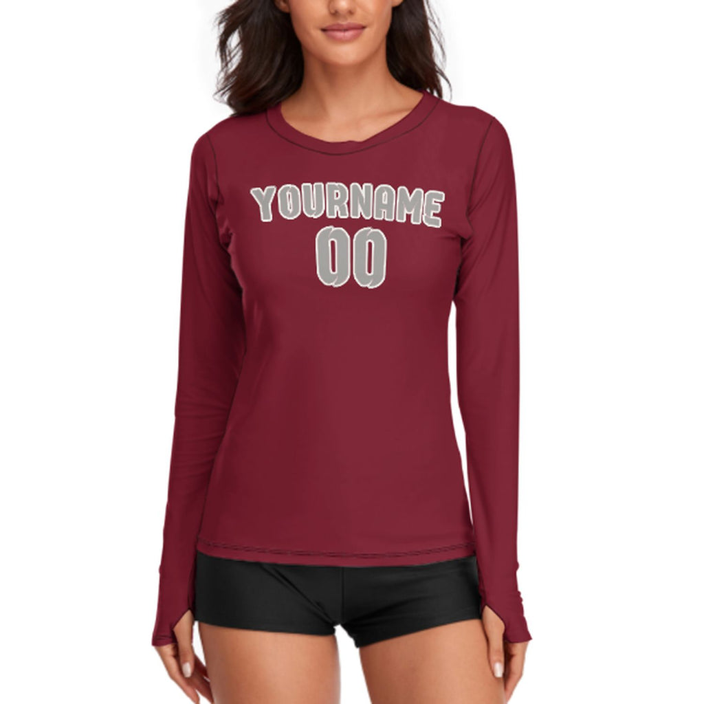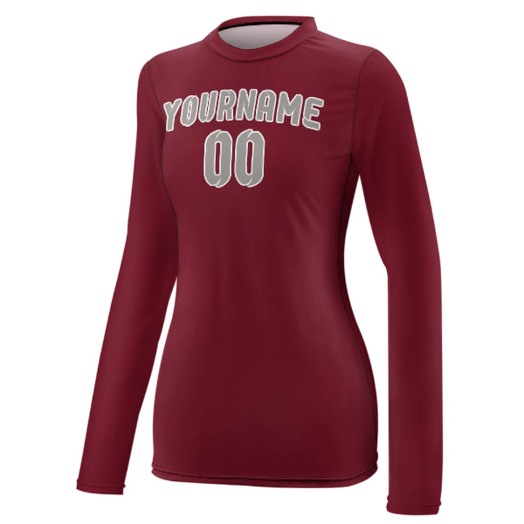 Custom Crimson Red Gray Women's Long-Sleeve Shirt