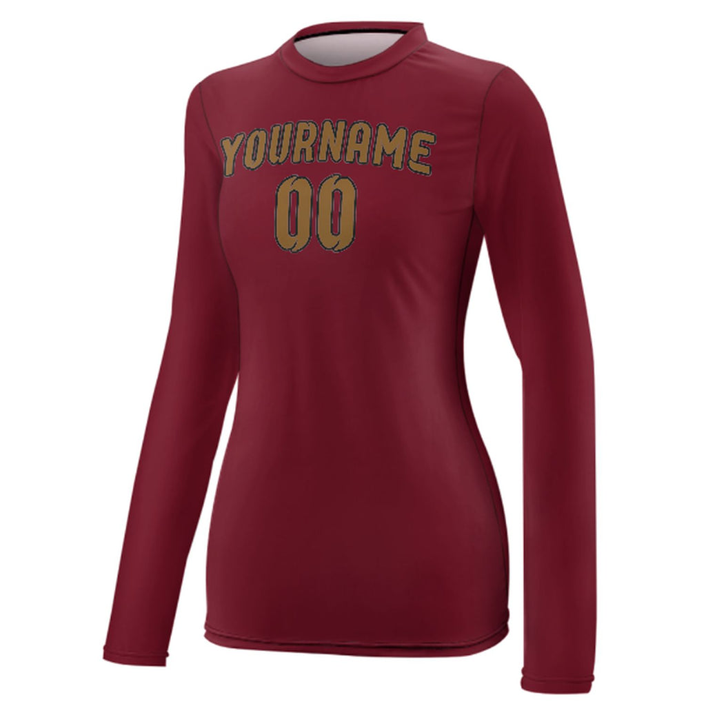 Custom Crimson Red Khaki Women's Long-Sleeve Shirt