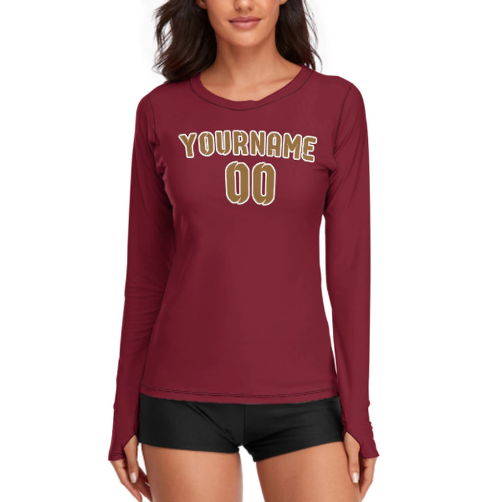 Custom Crimson Red Khaki Women's Long-Sleeve Shirt