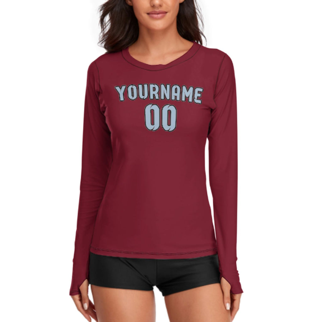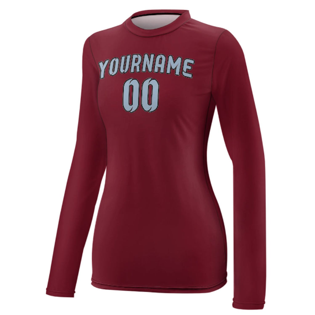Custom Crimson Red Light Blue Women's Long-Sleeve Shirt