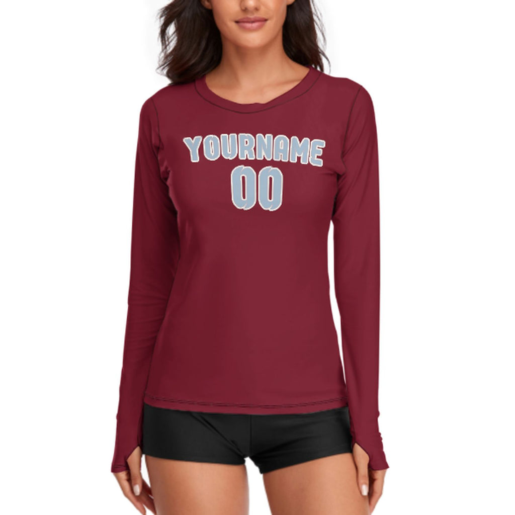 Custom Crimson Red Light Blue Women's Long-Sleeve Shirt