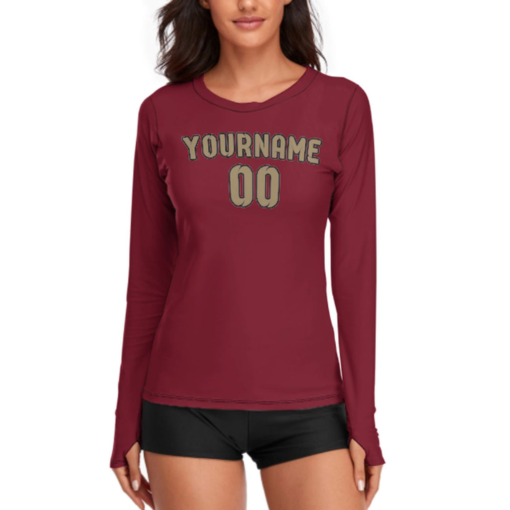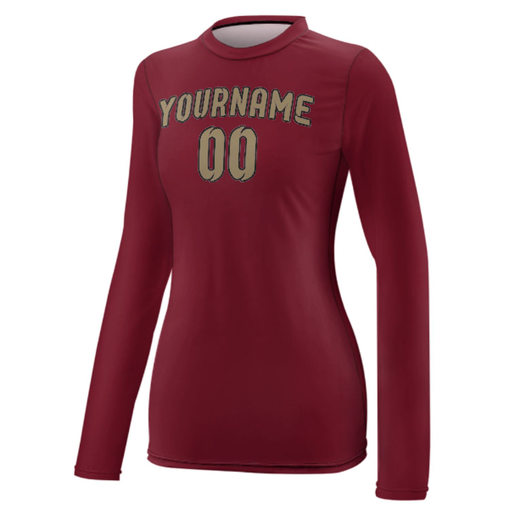 Custom Crimson Red Light Khaki Women's Long-Sleeve Shirt